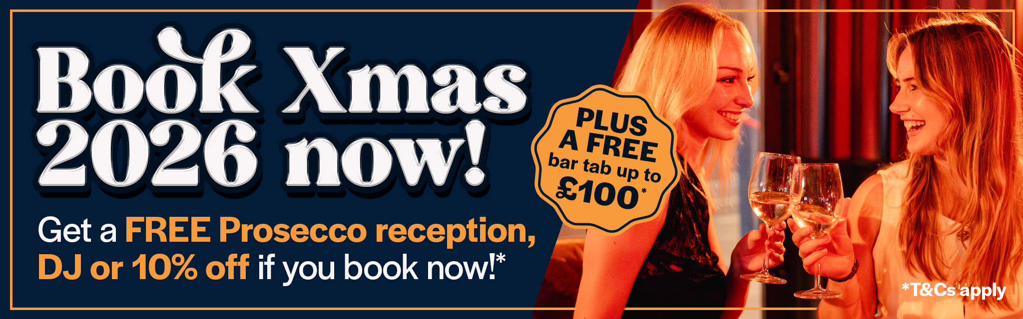 Up to £100 bar tab when you book early for Christmas 2026*